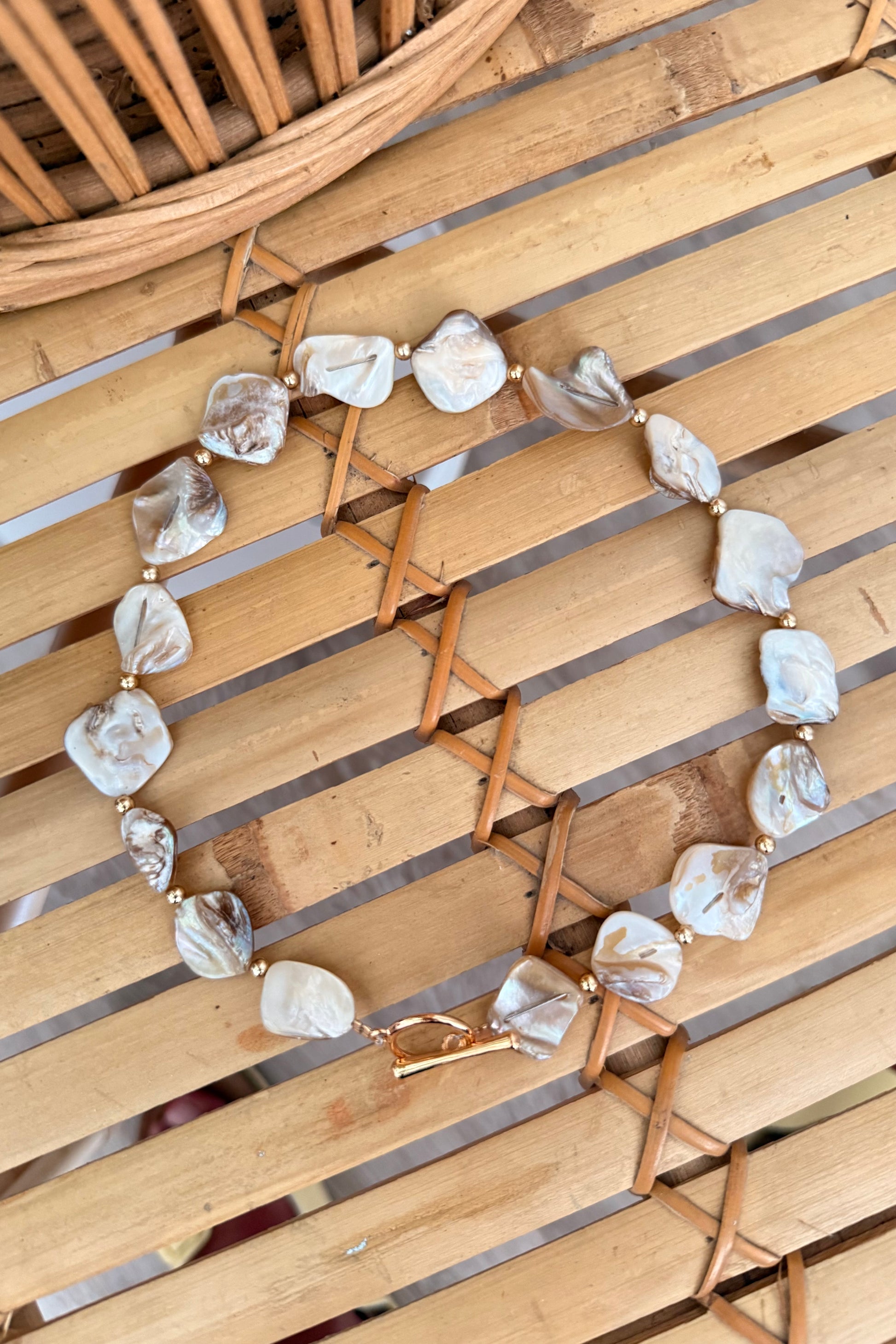 Este collar de perlas planas de nácar con cierre OT es el complemento ideal para tu look.