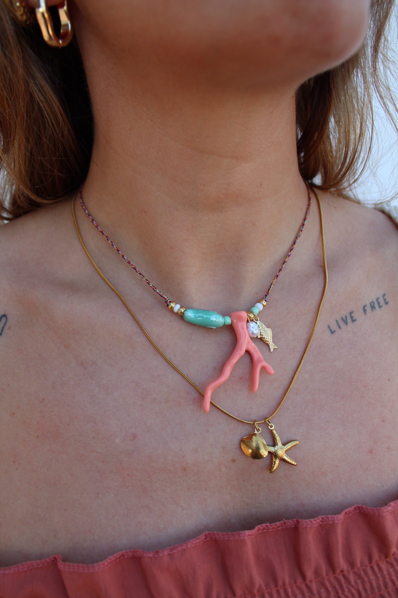 Nuestro collar de pez de coral es una pieza única y elegante que agregará un toque de belleza natural a tu atuendo.