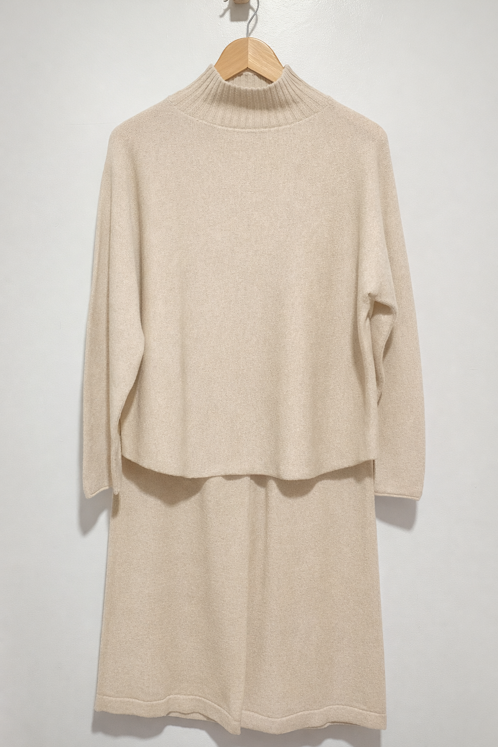 Conjunto COMFY de punto dos piezas en tono beige claro, ideal para un look cómodo y sofisticado a la vez.