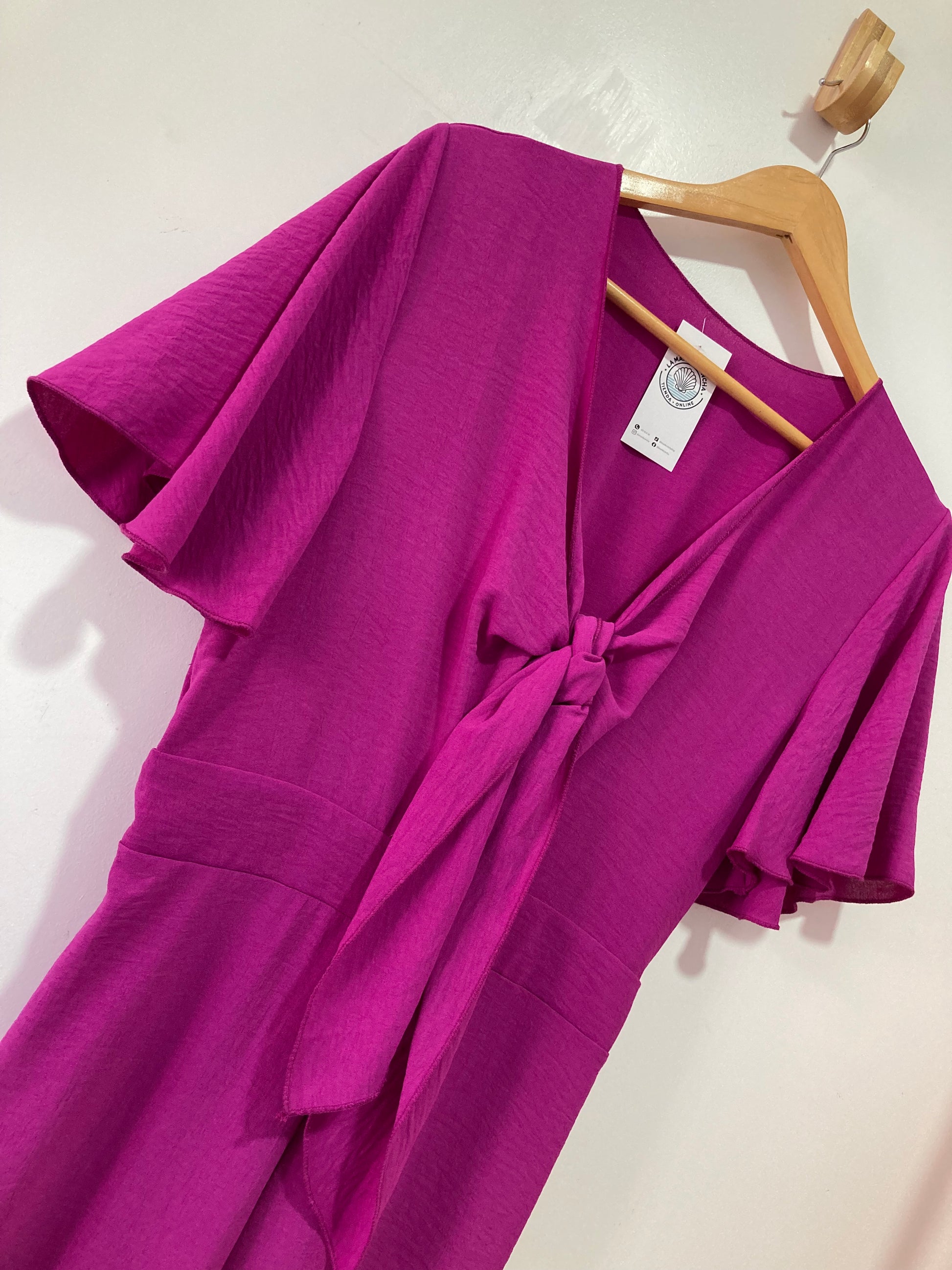 Este mono con manga corta con volante es la opción perfecta para cualquier evento formal, bodas, bautizos, comuniones y graduaciones.