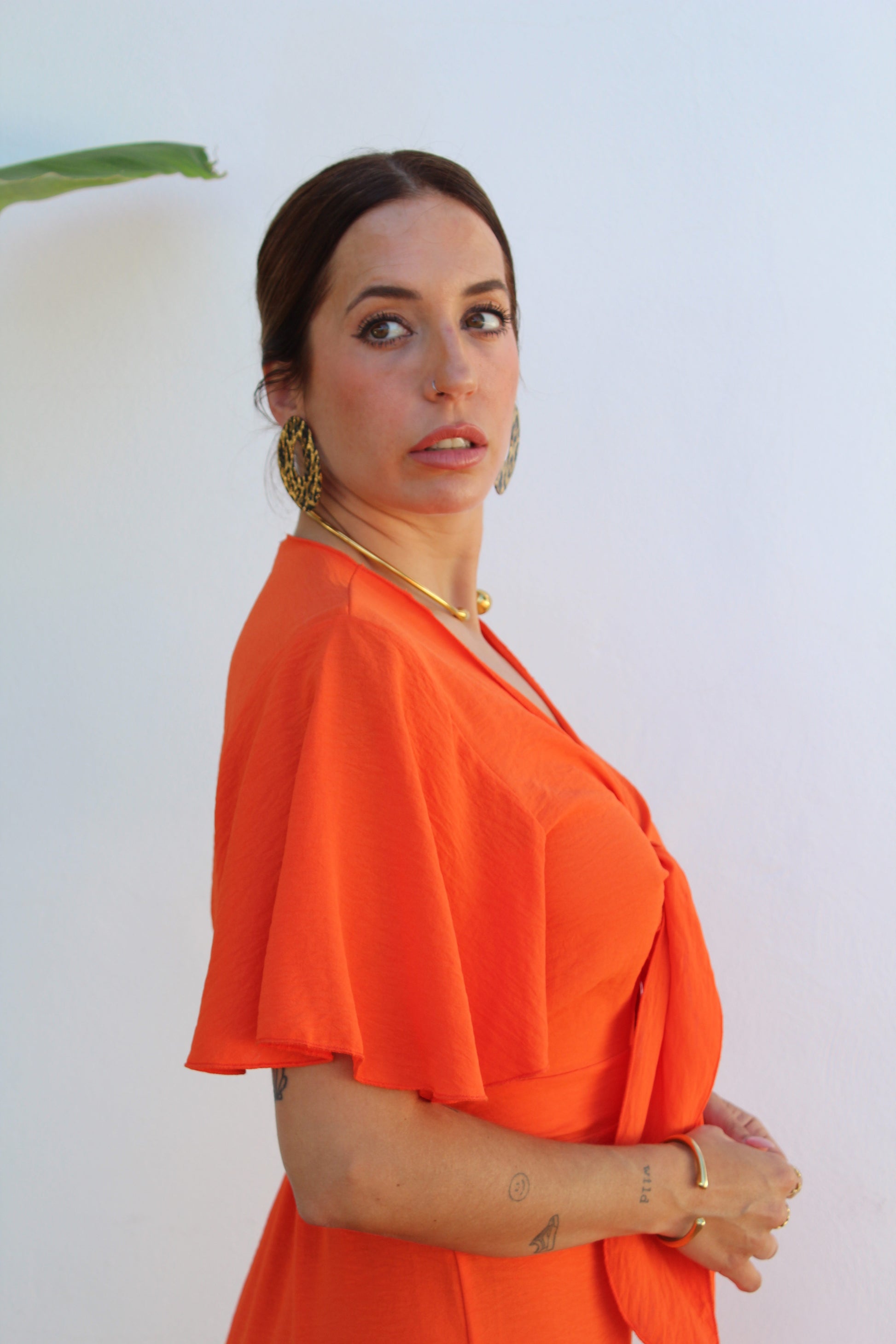 Con el detalle del nudo en el pecho que realza la figura y un escote en v sofisticado y elegante, te verás elegante y cómoda al mismo tiempo.