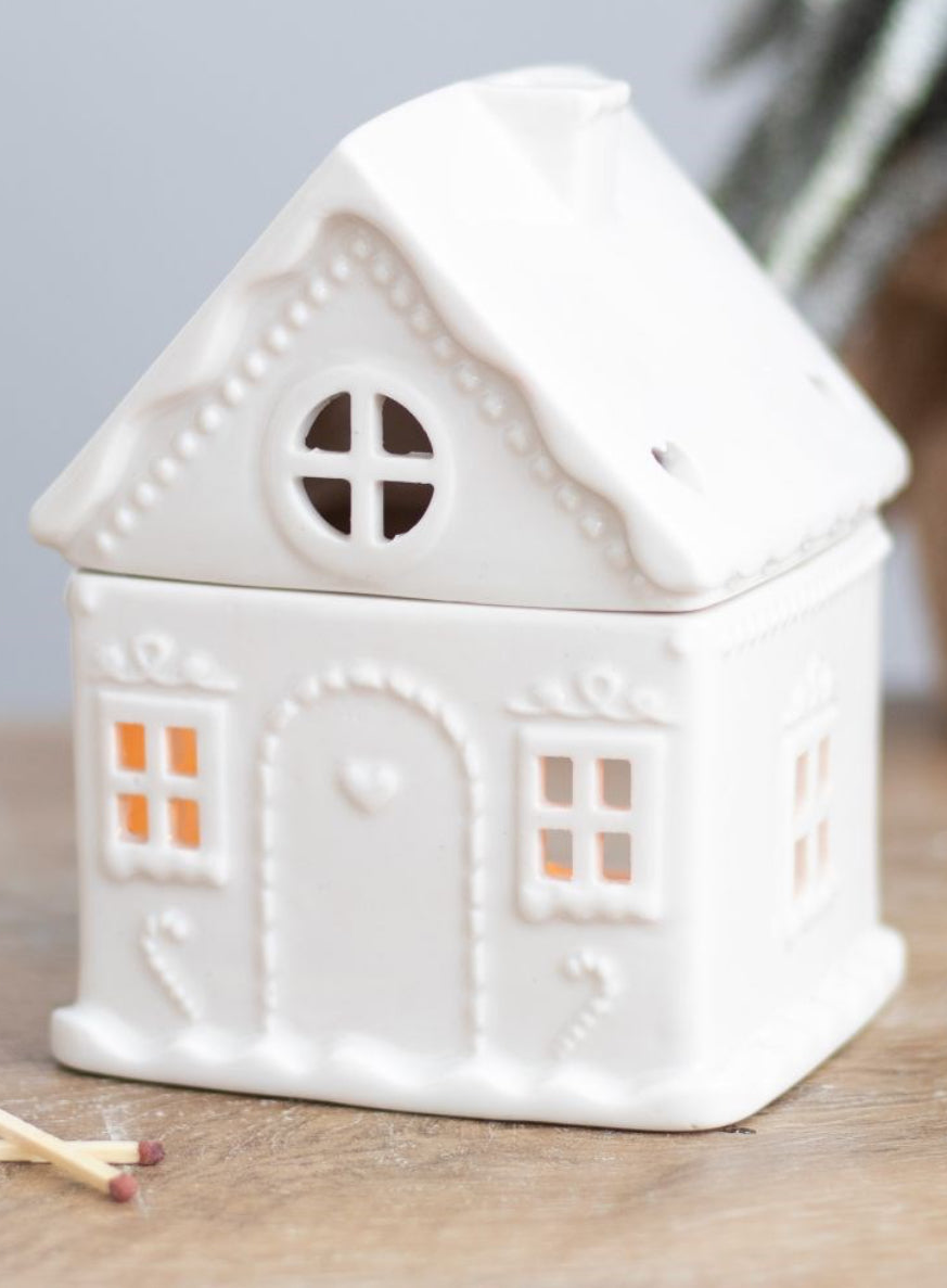 Llena tu hogar de dulzura y encanto con nuestro quemador de esencias en forma de casita de jengibre. Su diseño tierno y blanquecino evoca la magia de la Navidad convirtiéndolo en un detalle decorativo que alegra cualquier rincón.