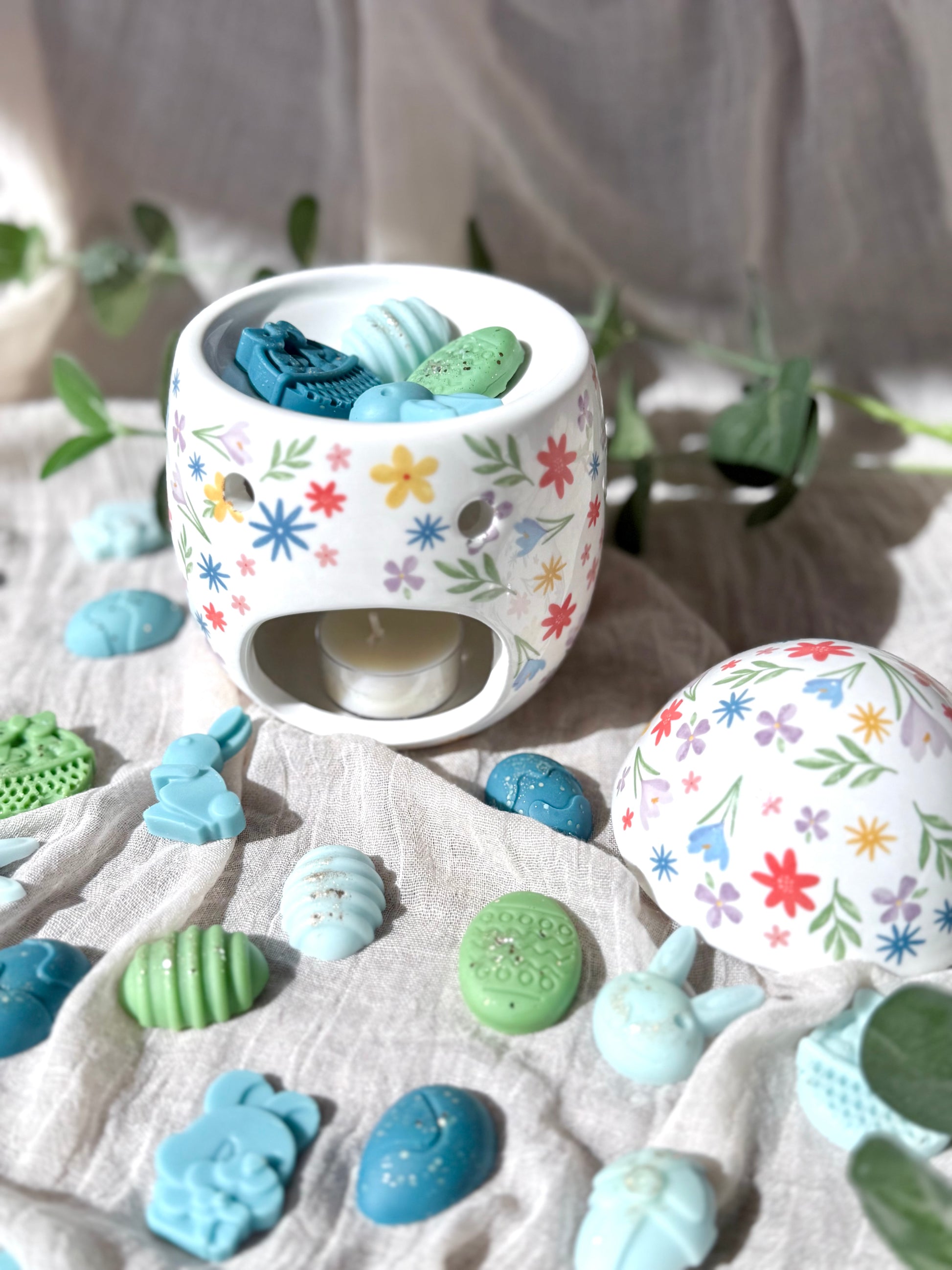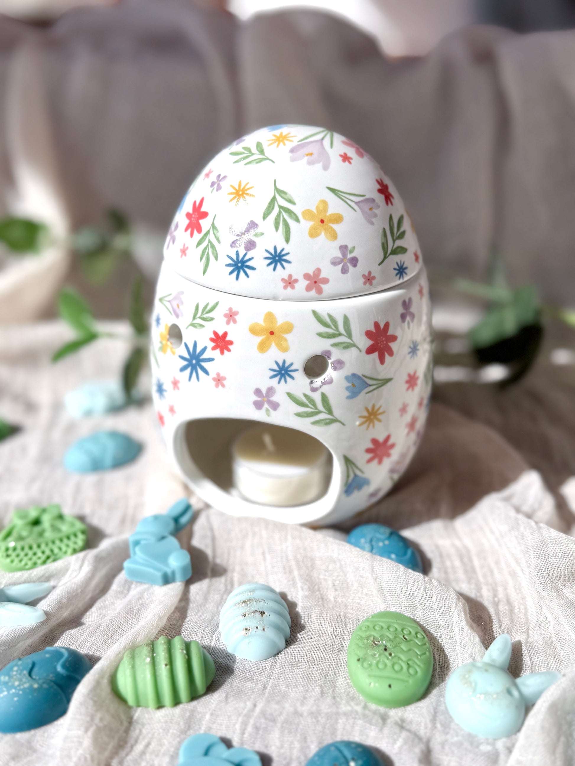 ¿Buscas transformar tu rincón favorito? Nuestro Quemador de Esencia "Spring Blossom" no solo perfuma tus espacios, sino que se convierte en la pieza central de tu decoración. Con un delicado estampado floral en tonos pastel y detalles artesanales, es el aliado perfecto para tus momentos de relax.