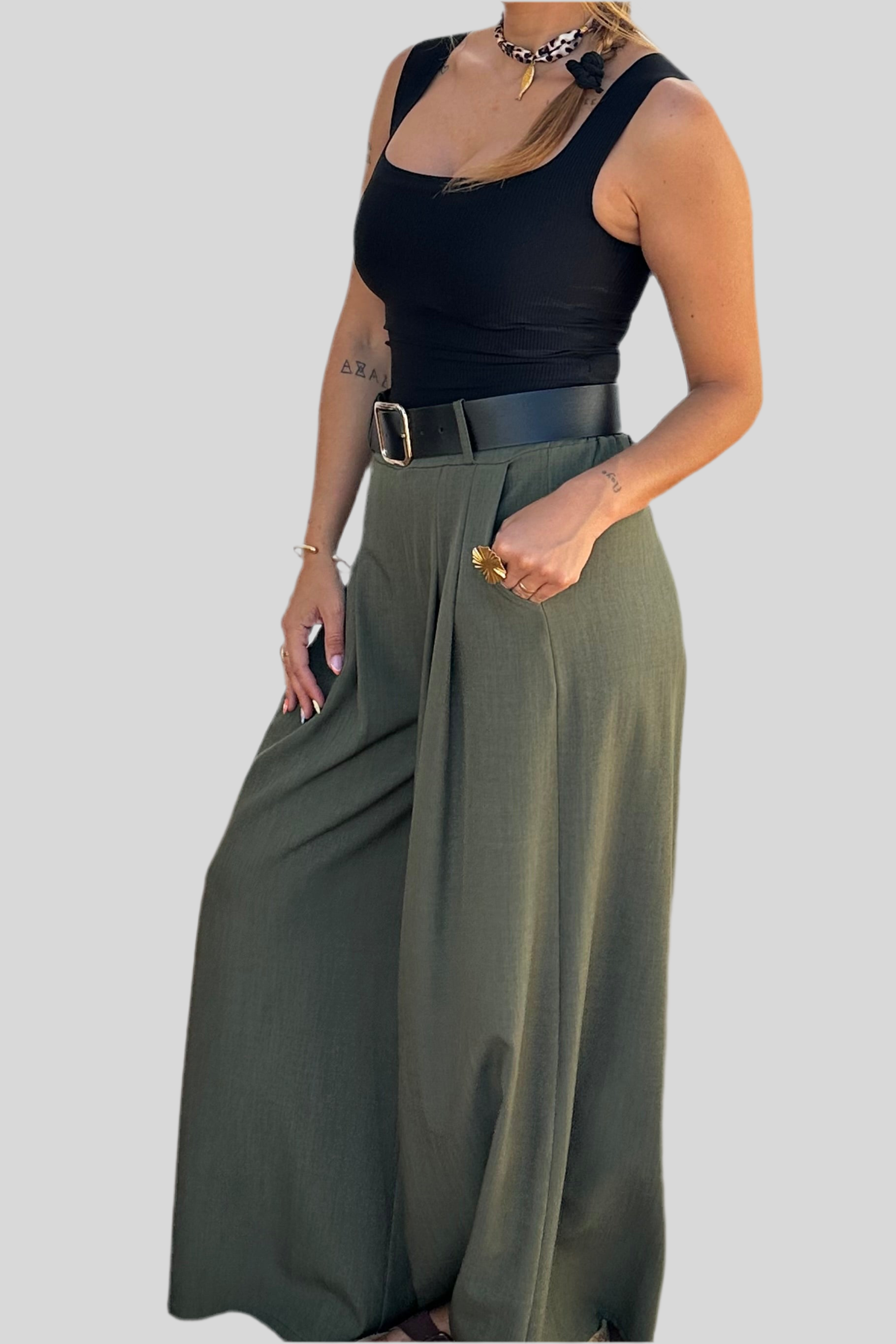 Nuestro pantalón palazzo fluido es ideal para una apariencia elegante y cómoda.