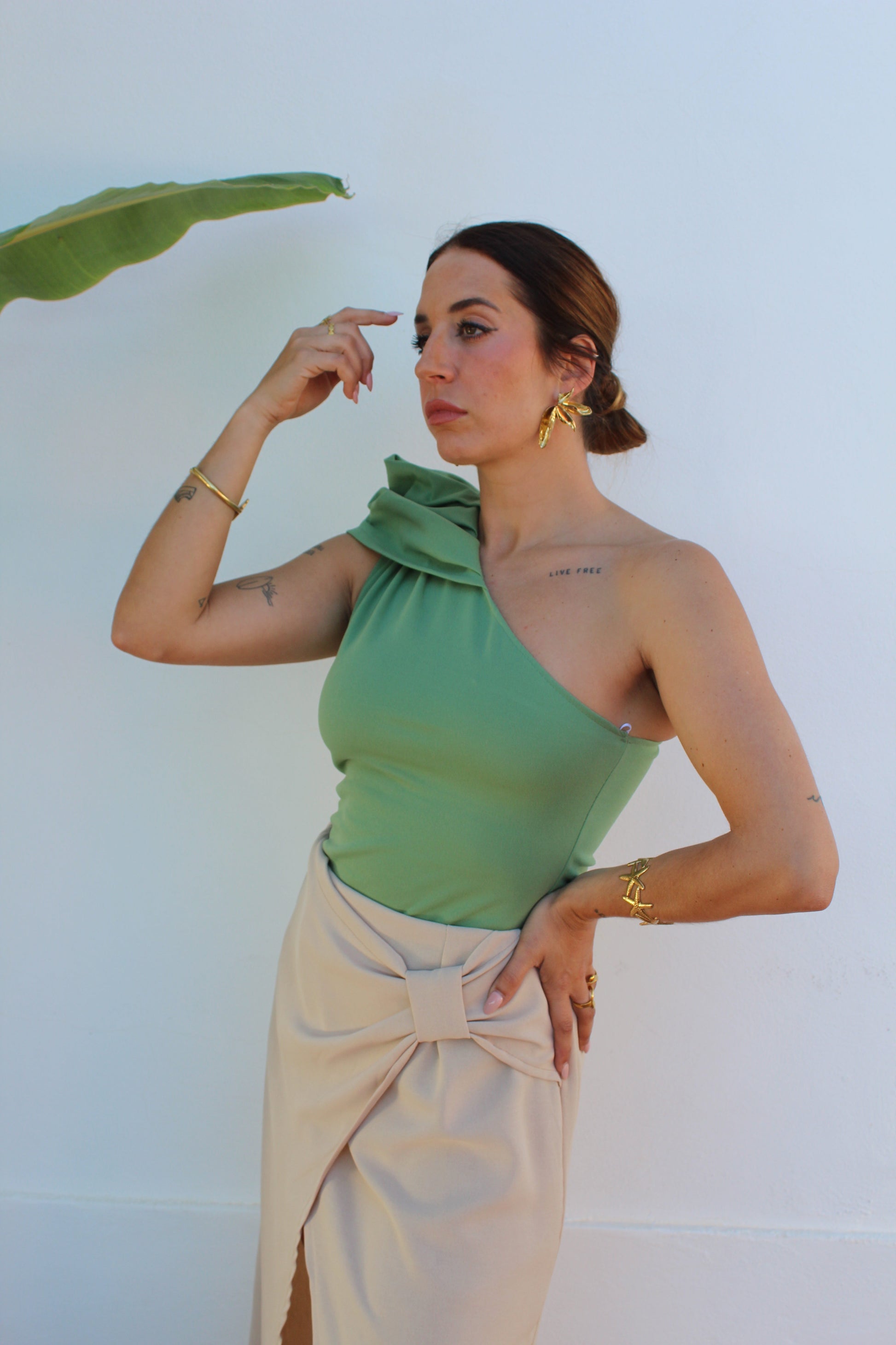 Nuestro elegante top con manga abullonada que aporta volumen y sofisticación a cualquier conjunto.
