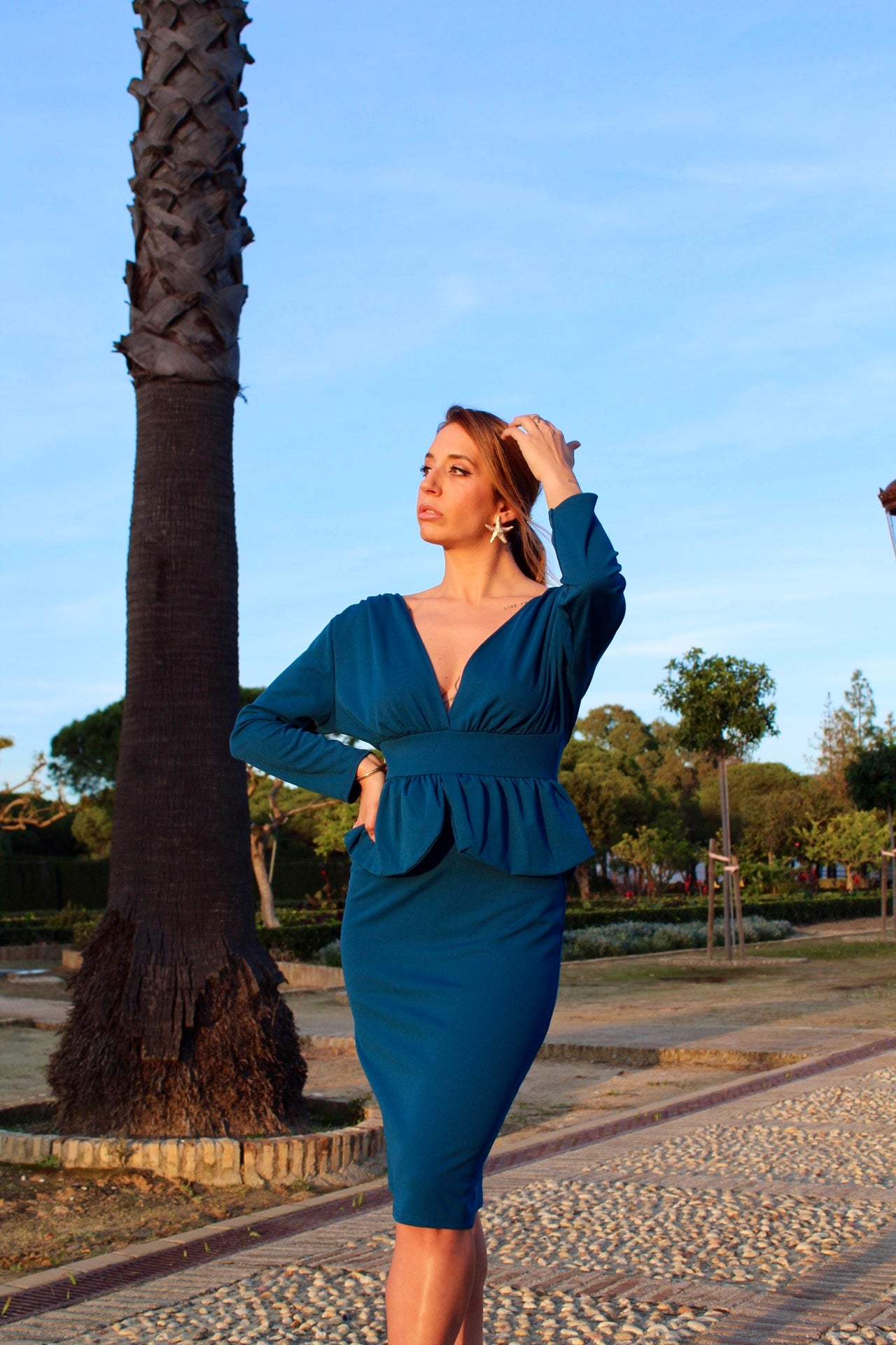 Mangas largas que aportan sofisticación. Cintura ajustada con volante peplum, tejido elático y cómodo perfecto para eventos especiales, bodas, comuniones,....